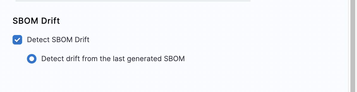 This feature allows you to track changes in SBOMs by comparing against the last generated SBOM. It provides a detailed analysis of addition or removal of components and licenses, helping you manage and oversee software artifacts more effectively. However, this is optional and not required for SBOM generation. If you prefer not to detect changes in SBOMs, leave this option unchecked.