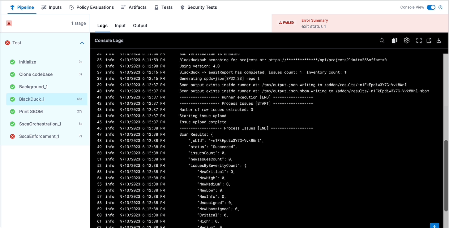 • SBOM File Path: enter the SBOM file path that uses the JOB_ID value, as detailed in Get the SBOM file path.