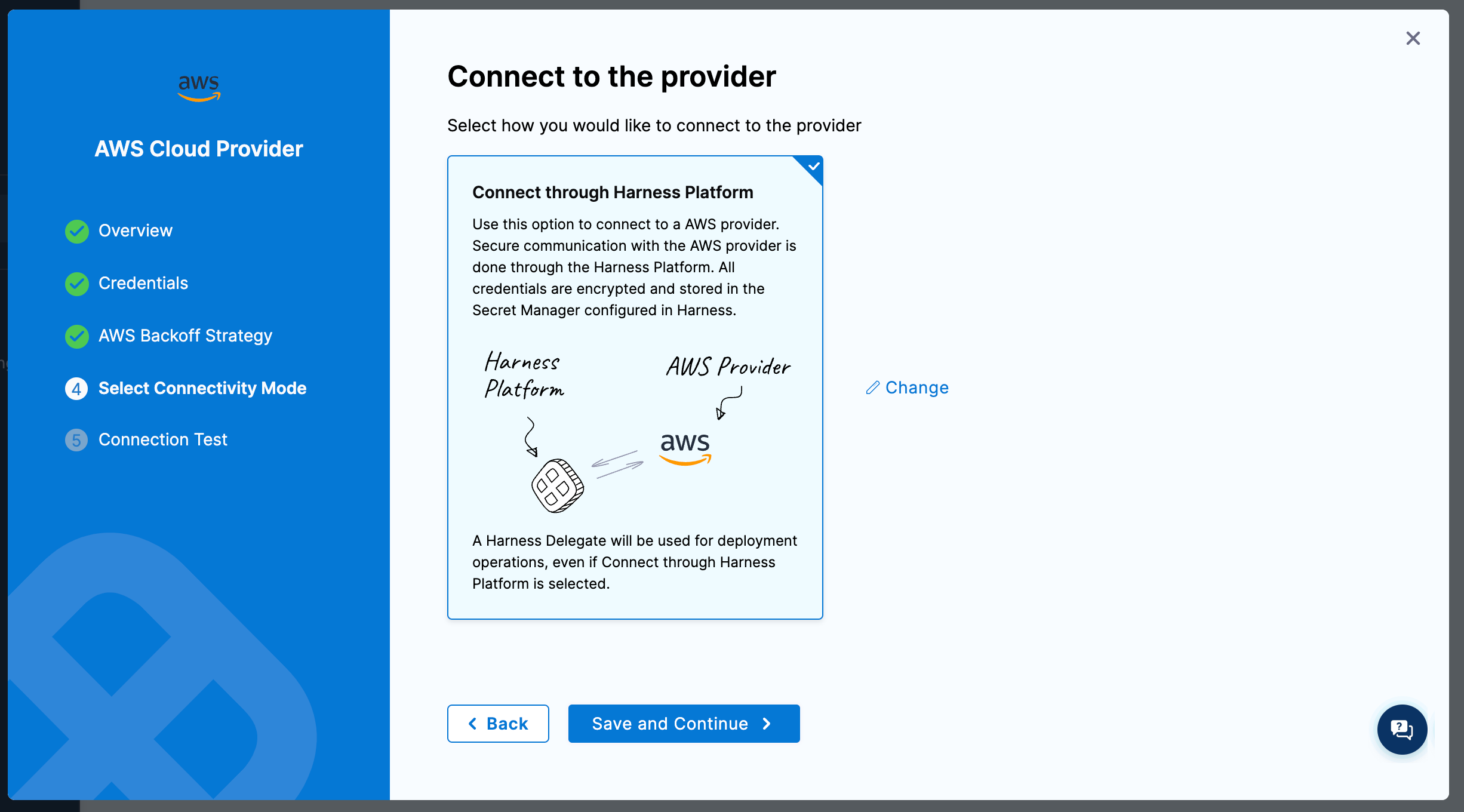 Finally make sure you select "Connect through the Harness platform" as the connection type.