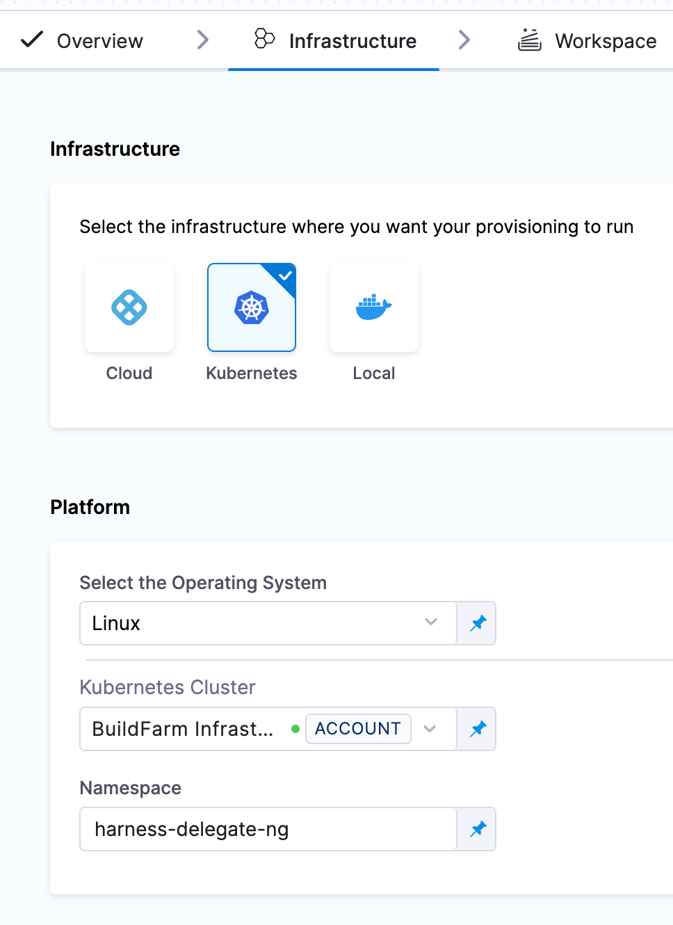 resource "harness_platform_connector_kubernetes" "harness_build_infra" {