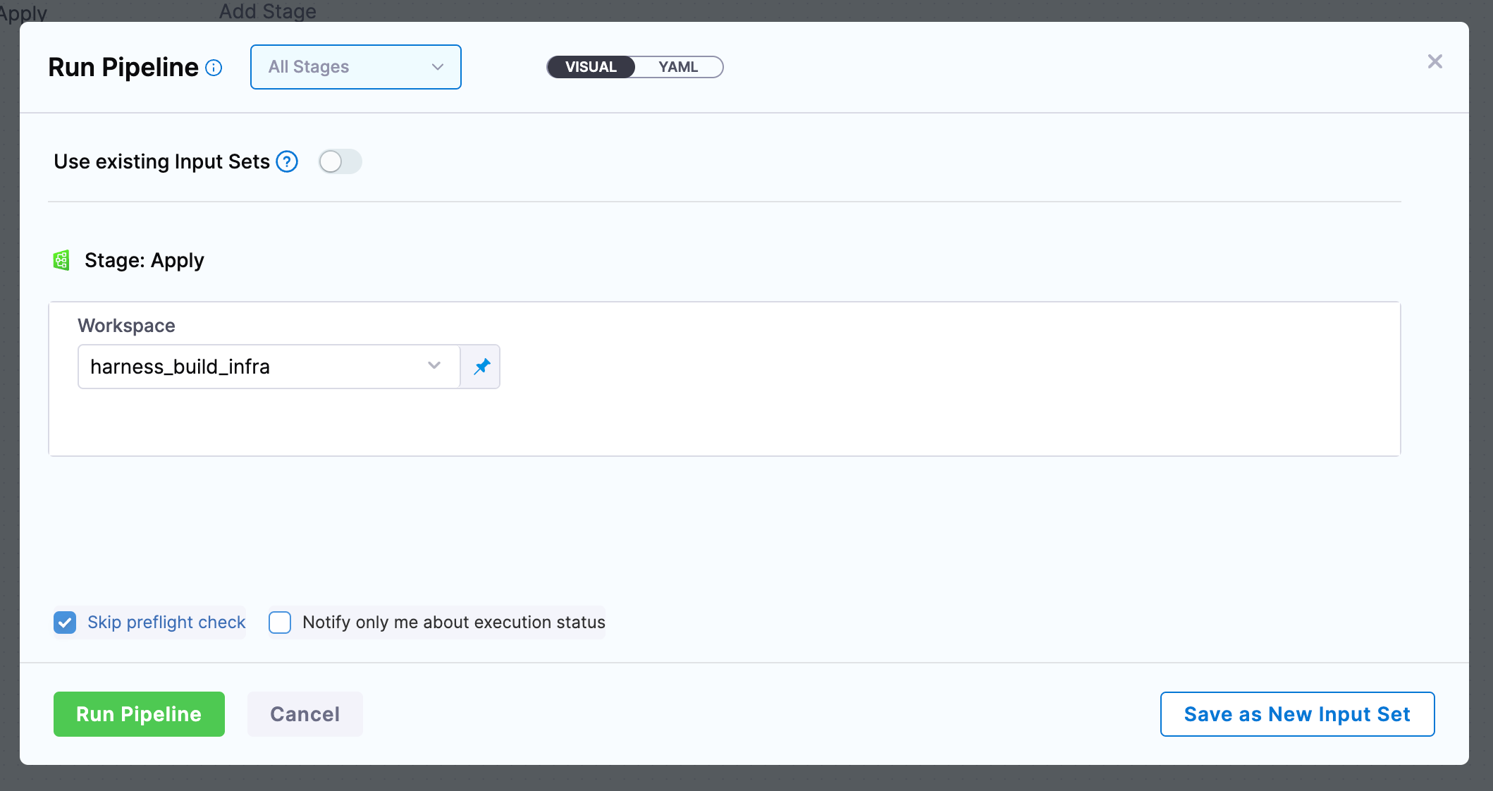 The following is an example of creating the above IaCM workspace using the Harness Terraform provider.
