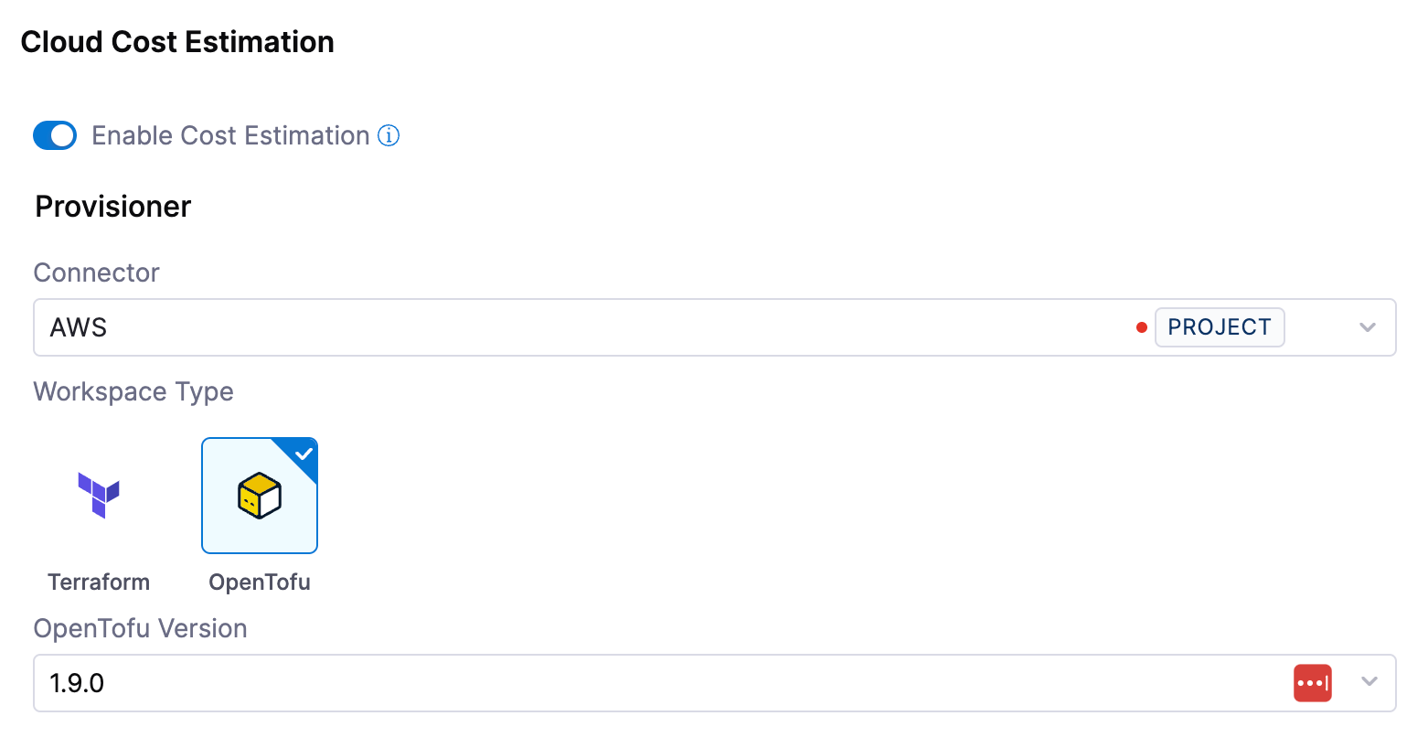 Navigate to the IaCM module and workspaces, then create a new workspace. Give it a name and be sure to enable cost estimation so we can be good stewards and know the impact we are having on the bill.